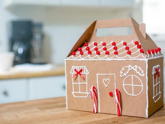 Роспись крафтовой коробки под пряничный домик.