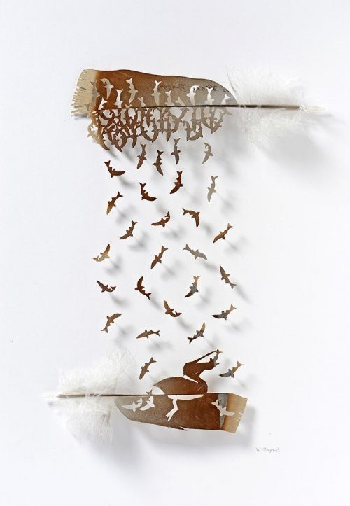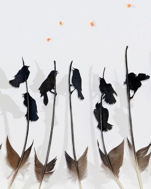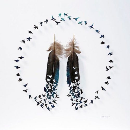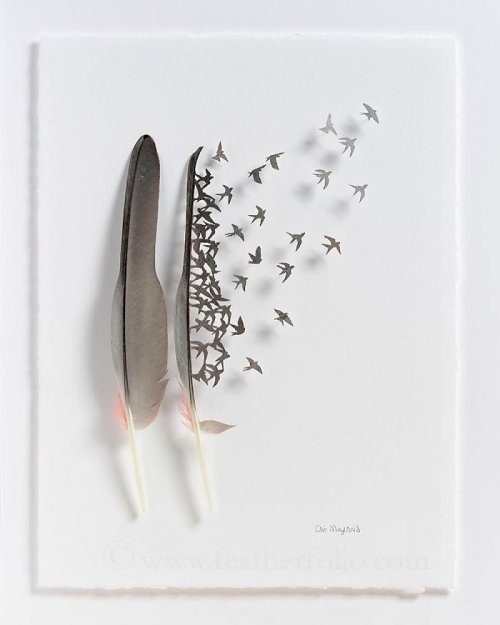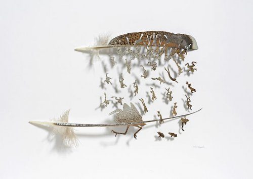 Художник Крис Мейнард (Chris Maynard) с помощью крошечных ножниц для глазной хирургии, хирургических щипцов и увеличительного стекла, передающегося из поколения в поколение, создаёт удивительно изящные произведения искусства из обычных птичьих перьев.