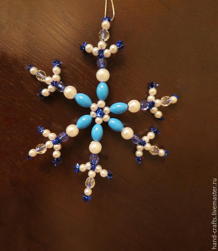 Прикрепите получившуюся петельку к центральной проволке любой из «веток». Снежинка готова!