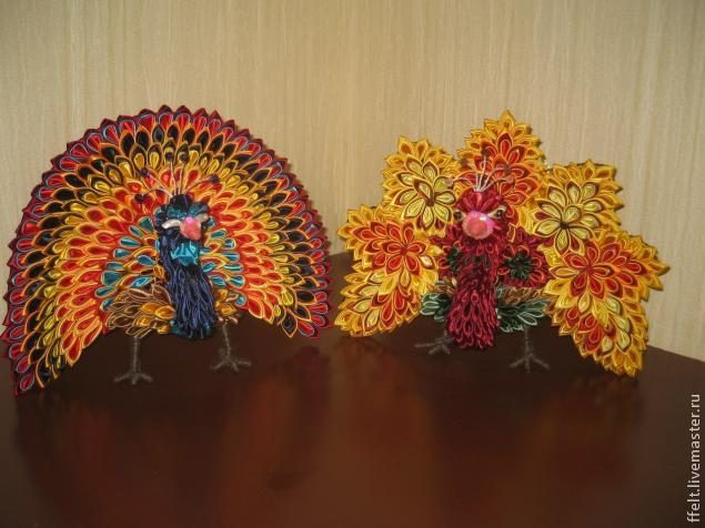 Создание жар-птицы и павлина в технике канзаши