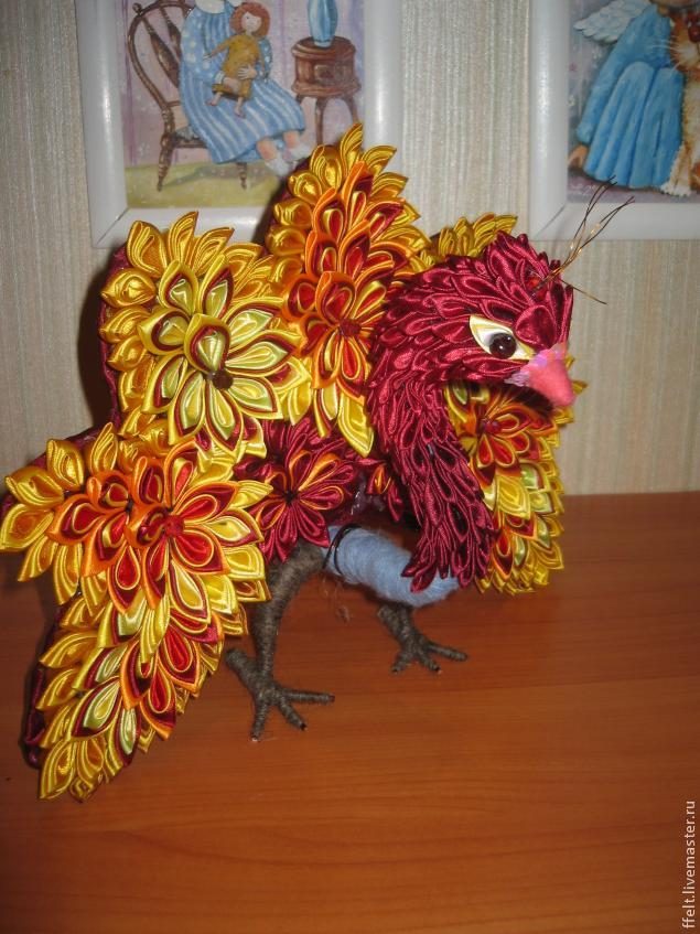 Сразу скажу, что работа эта сложная, кропотливая и очень трудоемкая. У меня каждая птица занимала примерно 2-4 недели работы по вечерам. Рассчитана на тех, кто уже овладел основами канзаши, умеет делать разные виды круглых и острых лепестков. Мастер-классы по их созданию Вы без труда найдете на просторах интернета.