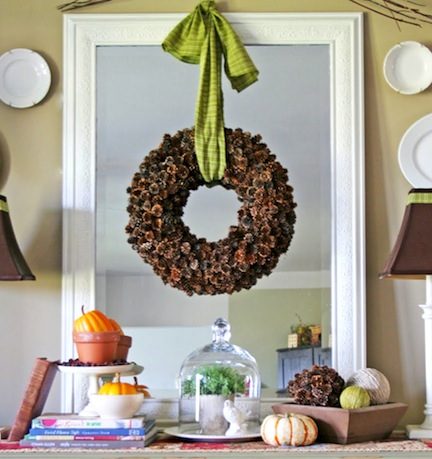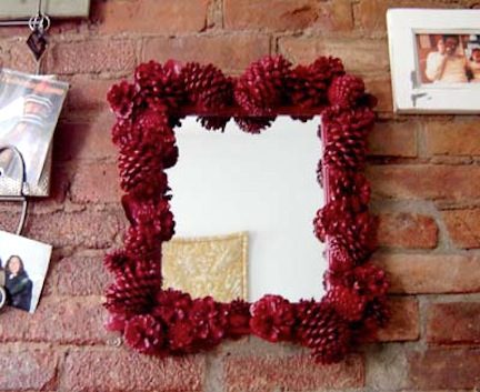 Рама для зеркала, украшенная шишками.