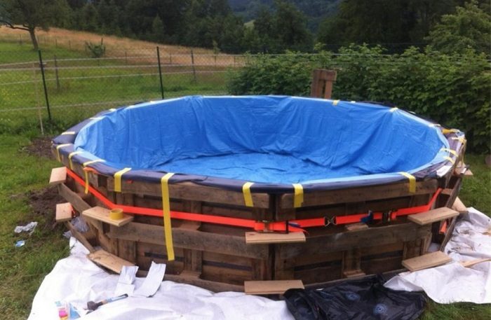 Деревянные поддоны — основа бассейна.