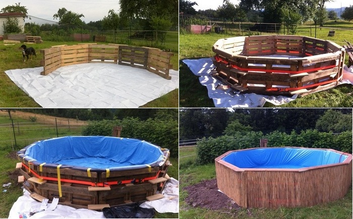 Один энтузиаст из Швеции по-своему решил эту задачу и построил бассейн из… деревянных поддонов. Стоимость всей конструкции не превысила и 80 дол.