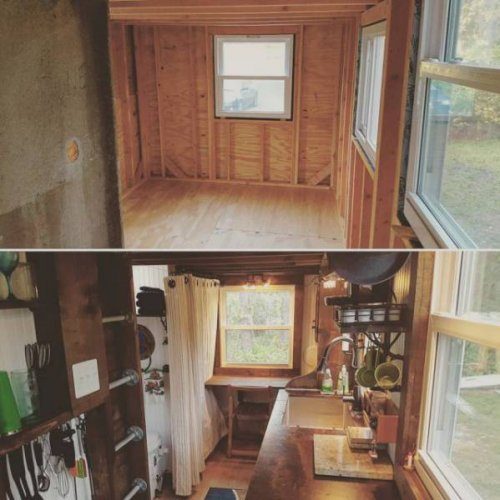 Парень нашёл 8-метровый прицеп и построил на нём дом площадью 21,4 квадратных метра, потратив на строительство и обустройство домика 14.000 долларов.