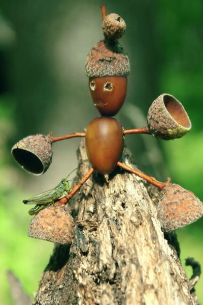 Красиво. В детстве мы тоже таких человечков делали. Сейчас дубы спилили, желудей нет.