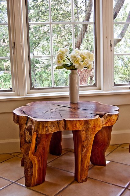 Замечали ли вы насколько прекрасны для декорирования материалы, сделанные самой природой? Старые пеньки с толстой корой, подгнившие доски или бревна из древесины. Это все наполняет интерьер квартиры особым духом.