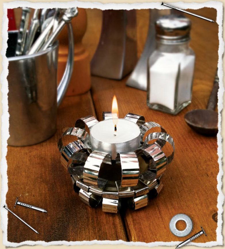 13. Думаю, вы уже догадались, что этот милый серебристый подсвечник когда-то тоже был обычной жестяной банкой.