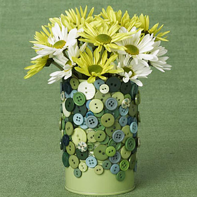 1. Яркие пуговицы найдут свое применение и в декоре этой банки, которая с помощью них превратиться в оригинальную вазу.