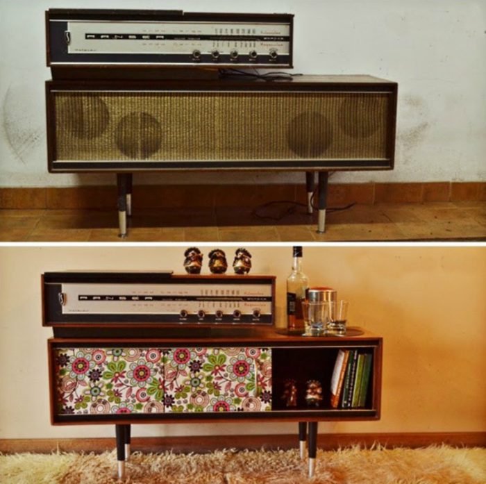 Ненужная радиола превратилась в яркую книжную полку.