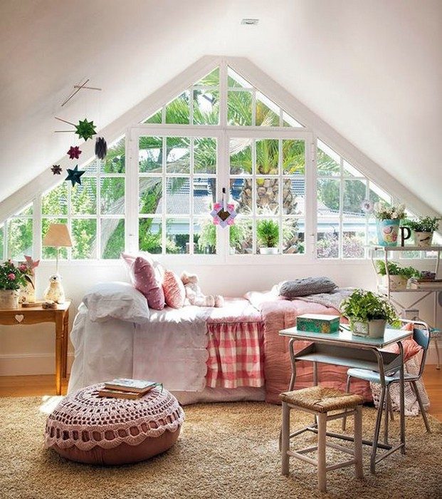 Какой ребёнок не мечтает о комнате под крышей? Да и такой светлый чердак язык ну никак не повернётся назвать «страшным».