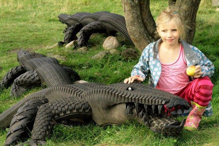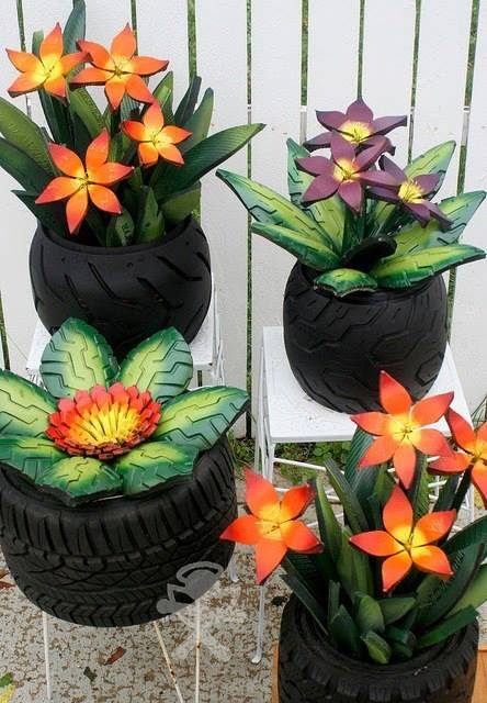 А вот этот шедевр я хочу выделить своим комментарием) Это, горшки с цветами, — из резиновых шин. С ума сойти, как красиво)