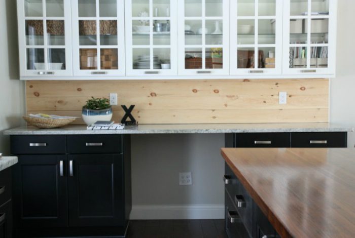 Кухонный фартук, украшенный необработанными досками из светлого дерева, станет чудесным дополнением уютной деревенской кухни.