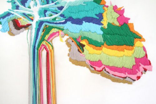 Перуанская художница Ана Тереза Барбоза (Ana Teresa Barboza) создаёт необычные пейзажи с помощью нетрадиционной вышивки пряжей и нитками. Она вышивает большие гобелены с реками, долинами и волнами, которые будто вытекают из стены, стекая на пол.