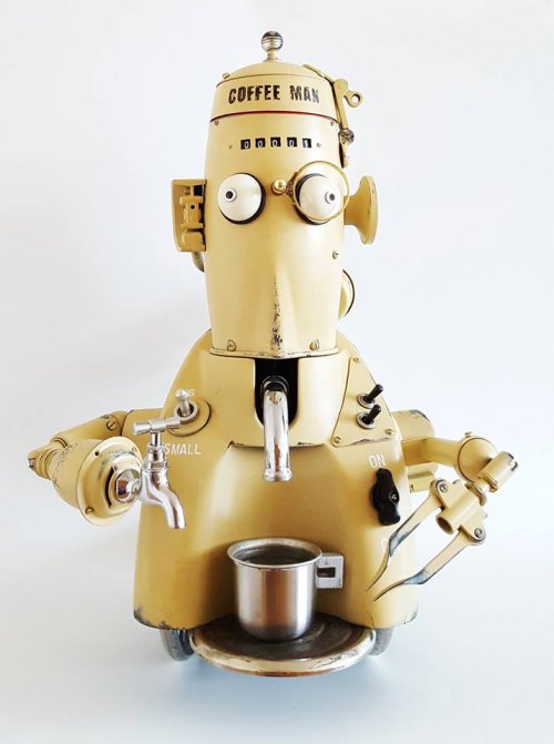 По словам художника, ему нравится переделывать вещи, которые были выброшены и бесполезны, придавая им новую форму и превращая в произведения искусства.