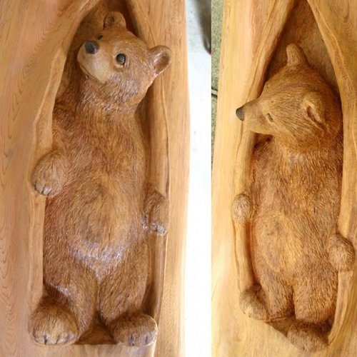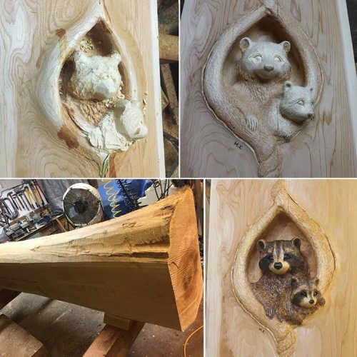 Художник Мориюки Коно (Moriyuki Kono) занимается резьбой по дереву и вырезает скульптуры животных, вылезающих из упавших брёвен. Родившись в 1967 году в Японии, художник в 1997 году переехал в Канаду, где живёт до сих пор.