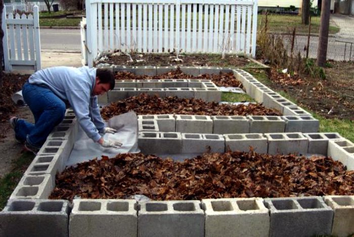 С помощью шлакоблоков можно создавать приподнятые грядки разных форм и размеров. На дно можно постелить картон или агроволокно, сделать прокладку из веток или мелкого мусора и засыпать землю. Ухаживать за такими грядками гораздо проще, чем за обычными, ведь на них не появляются сорняки.