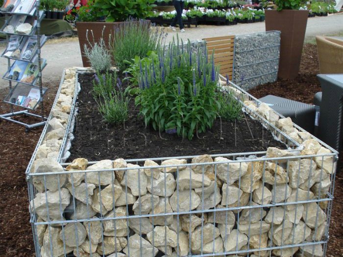 Бортик для высокой грядки можно соорудить из габионов. Грядки из габионов прослужат долгие годы и станут настоящими изюминками дачного участка.