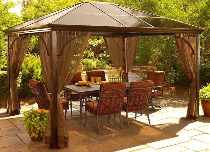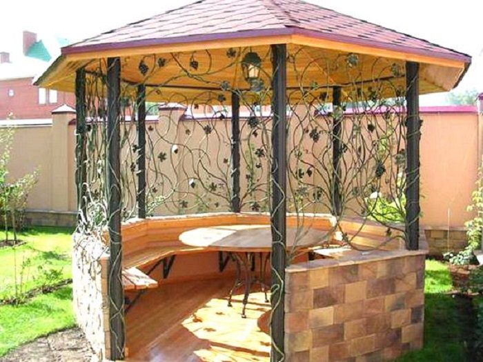Эта беседка интересна тем, что рядом с ней можно высадить вьющиеся растения, которые создадут тень.