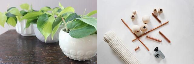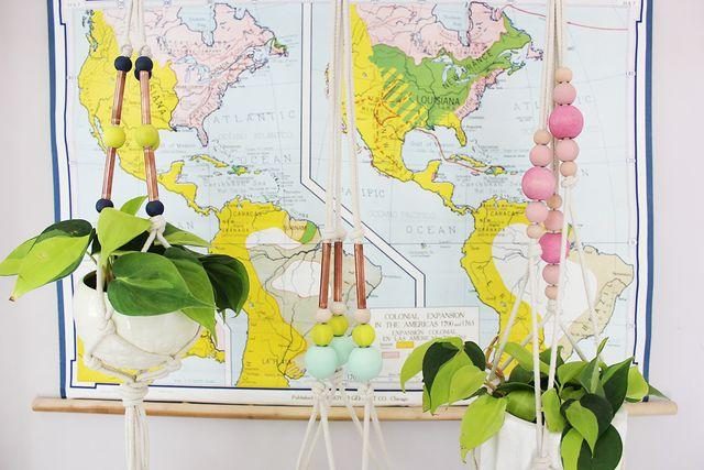 Для украшения подвесных горшков не обязательно использовать именно деревянные бусины и медные трубки, здесь все зависит от вашей фантазии.