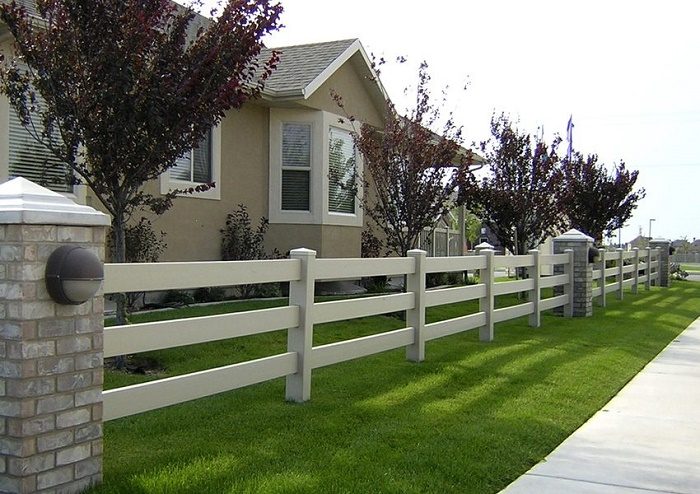 Если вы не любите заборы в виде огромных стен – это вариант для вас, забор в стиле кантри. Светлый, умеренный, хорошо смотрится.