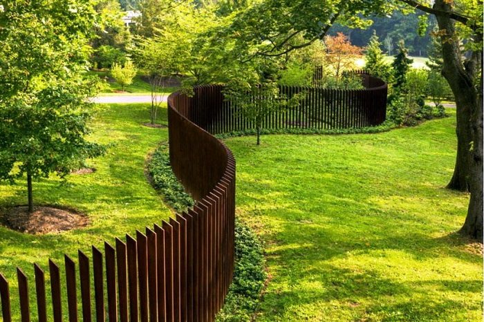 Вы можете сделать забор из дерева или металла. Сделайте его одноуровневым, волнами. Воплощайте свои мечты и фантазии.