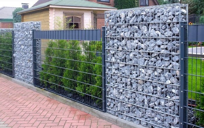 12. Забор из металлической сетки, камней и насаждений