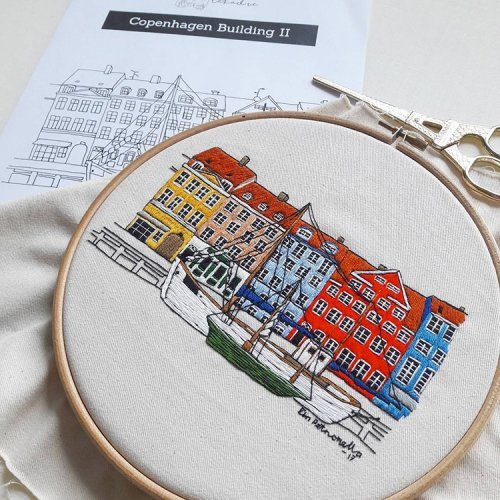 От цветущих парижских балконов и высаженных деревьями улиц до красочных портовых городов Дании, каждое вышитое произведение искусства начинается с очаровательного городского эскиза, а затем воплощается в жизнь в виде вышивки. И хотя Генри и Петронелла являются двумя различными художниками, этот творческий дуэт сумел создать единый стиль.