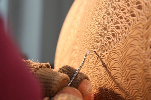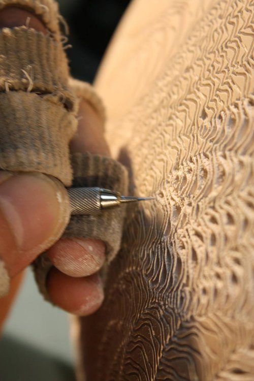 «Узор, который я вырезаю, вызывает у зрителя ощущение вибрации, – говорит Чон Мин. – Узор имитирует природу в движении подобно волнам».