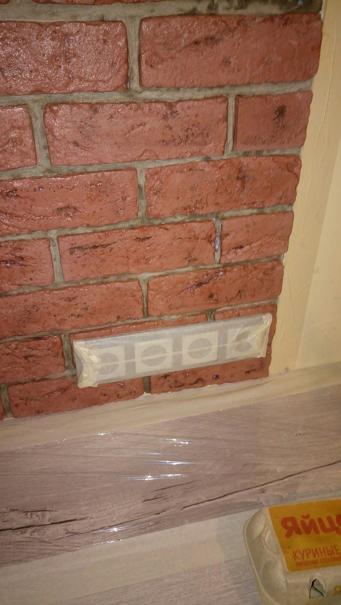 Фартук из гипсового «кирпича», дабы не впитывал ничего, покрыл лаком для камня. Да и отмывать, если что, проще будет.