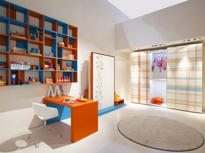 Апельсиновый плюс синий – прекрасное решение для тех, кто хочет быть в тренде и оставаться в центре внимания, привлекая заинтересованные взгляды гостей. Столь смелое цветовое сочетание отлично будет смотреться в любой комнате, начиная от спальни и заканчивая детской, или же кухней и ванной.