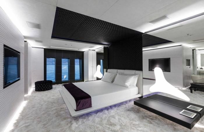 Чёрно-белая спальня. Драматично и эстетично.
