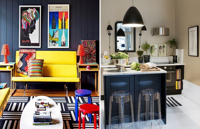 Лучшее место для яркого акцента – мягкая мебель: диван, кресла, пуфы.