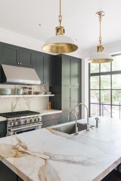 Говорят, что зелёный цвет успокаивает, а так же ощущение спокойствия, тишины и умиротворения. Все оттенки зелёного, начиная от самых светлых (мята, шалфей, сельдерей, авокадо) и заканчивая глубокими изумрудными и бутылочными, идеально подойдут для отделки не только кухонь, а и детских, спален, гостиных и даже ванных комнат.