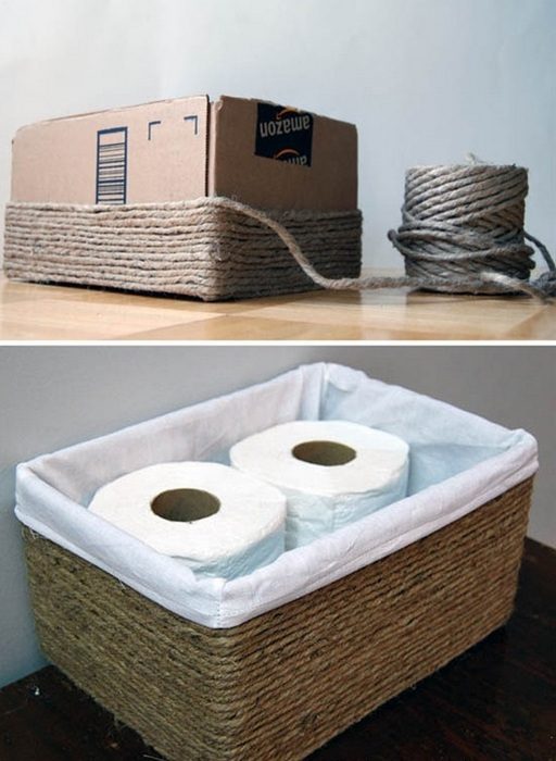 Мир декора удивителен и разнообразен, полон интересных идей и простых решений. Например, имея в руках обычную картонную коробку, моток джутового шнура и клей можно сделать очень стильную корзину для хранения, как со страниц интерьерных журналов.
