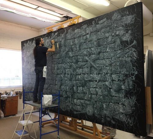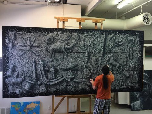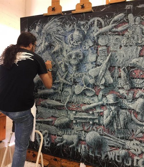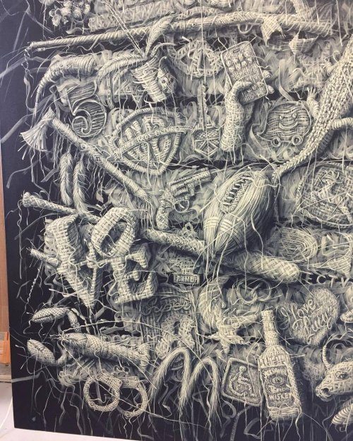 «Моя техника создания таких картин предполагает использование характерного стиля плетения, – написал художник на своём сайте. – Каждая картина создаётся примерно из 20 слоёв, накладывающихся друг на друга, чтобы создать этот ткацкий эффект и подчеркнуть взаимозависимость между человеком и природой. Этот способ символизирует не только то, насколько мы сильнее, когда мы связаны друг с другом, но и насколько мы уязвимы, когда отделены друг от друга».