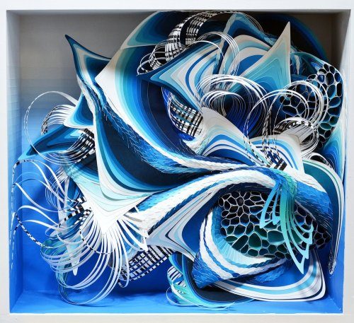 Создавая творения, в основном, в синих и зелёных оттенках, художница ваяет из бумаги замысловатые фигуры сложной формы, которые кажутся органичными, но при этом являются плодом её воображения.