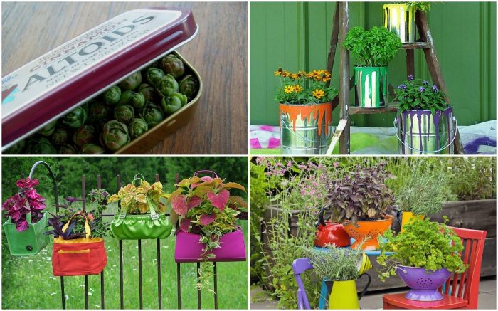 Цветочные горшки, сделанные из старых ненужных вещей