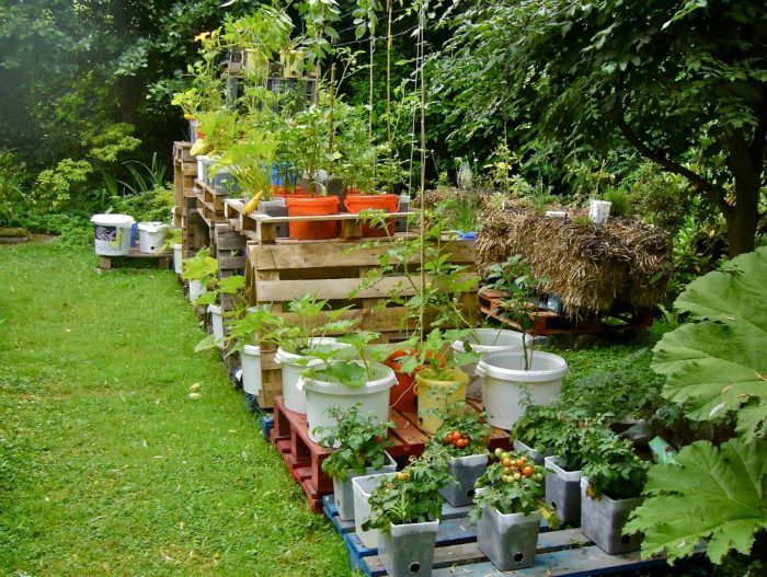 Из деревянных строительных поддонов получаются аккуратные и очень симпатичные грядки. Растения на таких грядках растут ровными рядочками, среди них реже появляются сорняки, а плоды и ягоды не соприкасаются с землей.