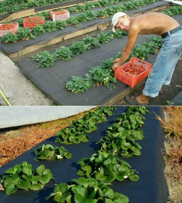 Грядки, покрытые агроволокном.