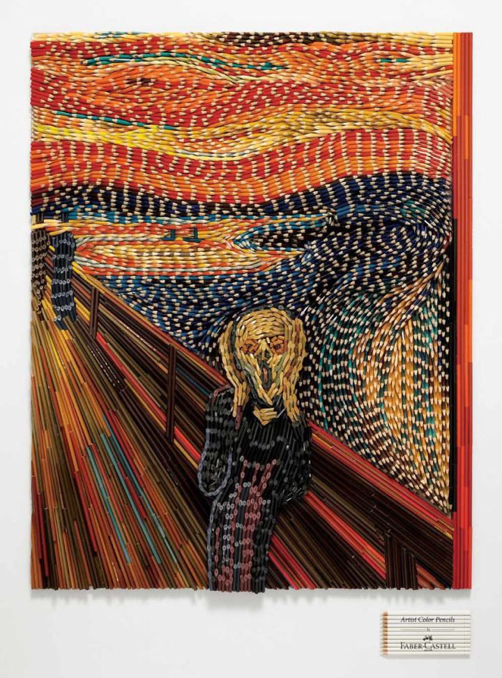 Гориллы и медведи, якоря и ракеты, влюблённая пара и даже репродукции известных картин — чего только не сделаешь из карандашей!