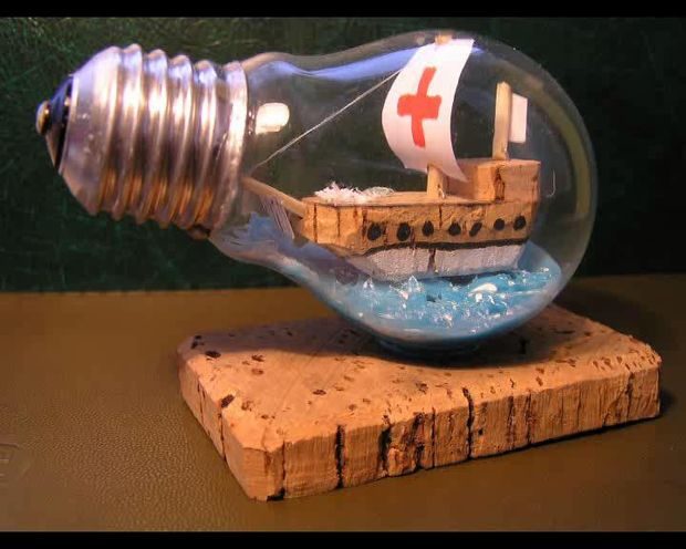Ходят слухи, что привычные лампы накаливания, похожие на груши, намереваются запретить. Разбираться в деталях этого запрета мне что-то неохота, зато я нашла расчудесный мастер-класс, посвященный тому, как превратить перегоревшую лампочку в отличный памятник самой себе, забавный сувенир ну и просто идея хорошая.
