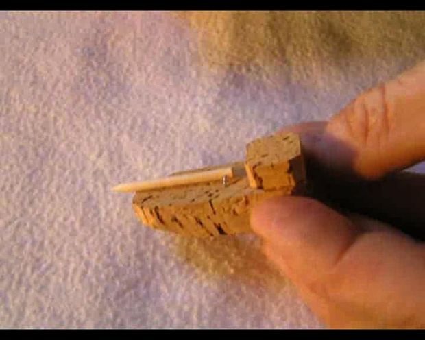 Сделайте корпус вашего кораблика из пробки или иного материала и прикрепите к нему мачту.