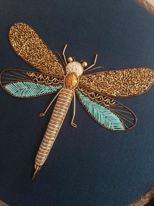 Рукодельница из английского города Бедфорд (Bedford) Хамайра Бинт Альтаф (Humayrah Bint Altaf) создаёт богато украшенные вышивки насекомых, используя блестящие нити и металлические бусины.