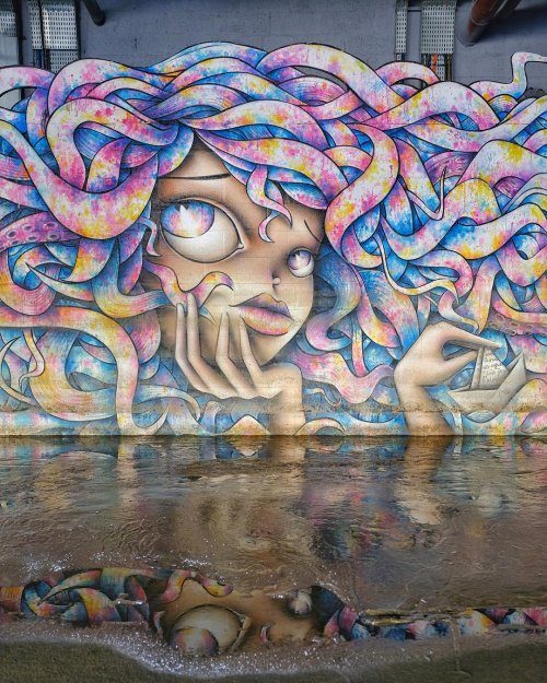 Французская уличная художница Вини Граффити (Vinie Graffiti) прославилась благодаря своим «объёмным» портретам женщин с роскошными шевелюрами.