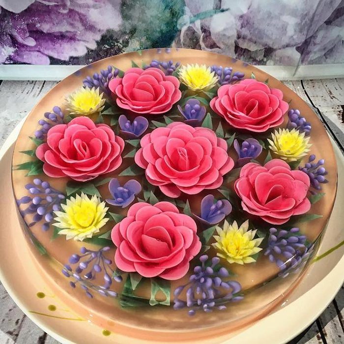 Желейные 3D-торты имеют все шансы на то, чтобы стать новым кулинарным трендом. Мастерица Сью Хен Бун из обычных, казалось бы, ингредиентов, создает фантастические композиции, украшенные цветами и золотыми рыбками.