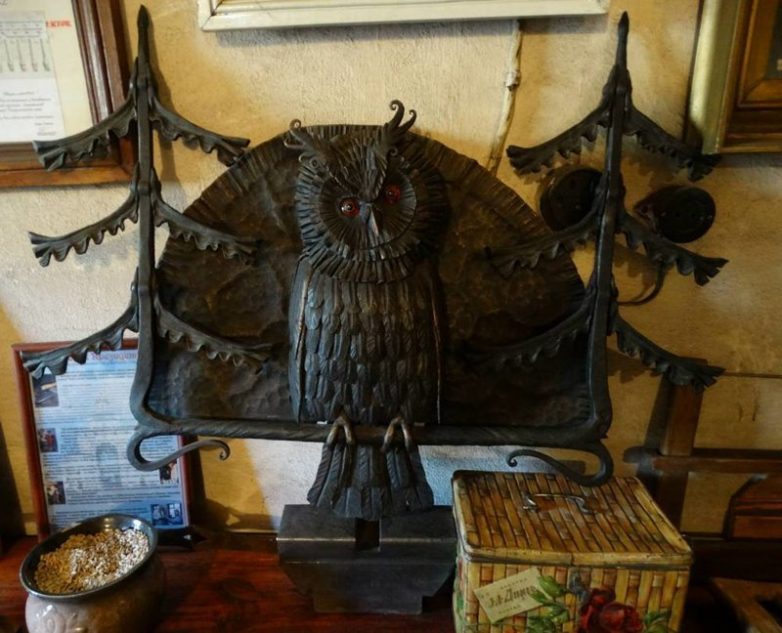 Пока ждали начала экскурсии, рассматривали в сенях кованые работы. Мне очень понравилась эта сова