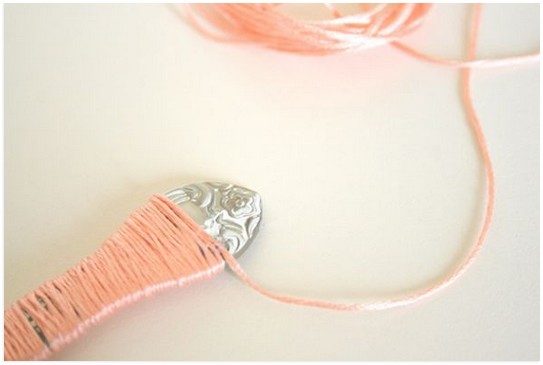 Аналогичная методика может быть использована, чтобы придать более оригинальный вид столовым приборам.Это очень простой процесс. Нанесите немного клея, а затем просто оберните пряжей. Вы можете использовать один цвет или несколько цветов, можете создать свой собственный дизайн.
