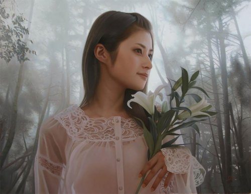 Японский художник Ясутомо Ока (Yasutomo Oka) работает в гиперреалистичной манере, создавая красивые фотореалистичные портреты японских девушек.