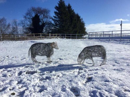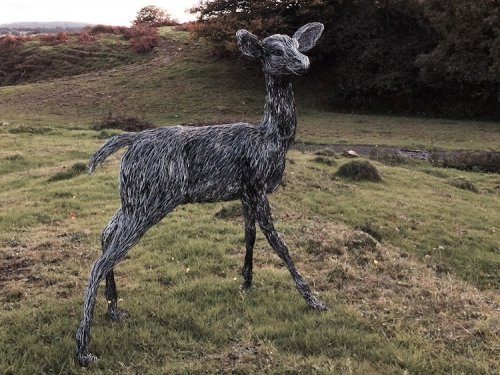 Стремясь сделать скульптуры максимально естественными из такого неестественного материала, как проволока, английская художница размещает их на открытом воздухе, в природных условиях, где они смотрятся весьма гармонично.